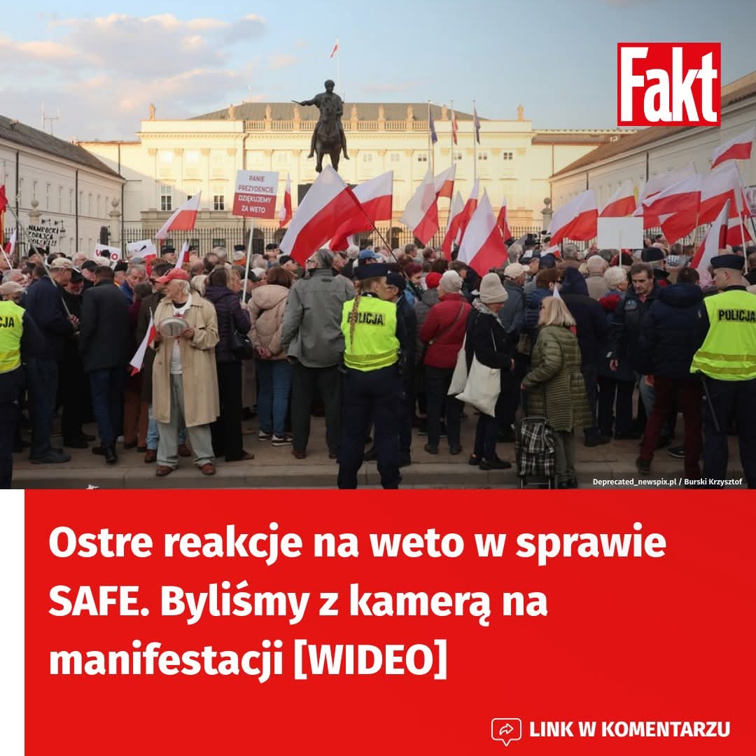 Prezydent Karol Nawrocki zawetował w czwartek, 12 marca, ustawę, która miała umożliwić wdrażanie w Polsce unijnego programu wspierającego zbrojenia — SAFE. Sprawa budzi ogromne emocje polityczne i społeczne. “Fakt” był z kamerą na manifestacji, która odbyła się 13 marca przed Pałacem Prezydenckim. Od ludzi usłyszeliśmy skrajnie odmienne opinie.