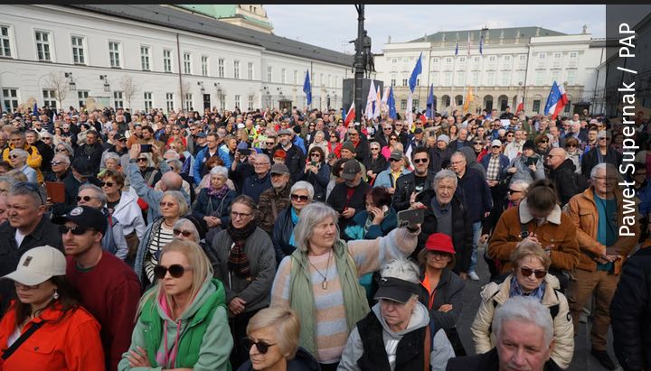 Protestujący przed Pałacem Prezydenckim wyrażają sprzeciw wobec decyzji prezydenta dotyczącej SAFE. Co kryje się za tym programem?