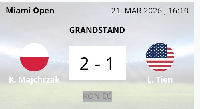 Końcówka nie przyniosła jednak zwrotów akcji i Majchrzak po podwójnym błędzie rywala wygrał spotkanie i awansował do trzeciej rundy w Miami co jest ogromnym sukcesem! W kolejnym spotkaniu nasz tenisista zmierzy się z Francuzem Quentinem Halysem (111. miejsce w rankingu ATP), który niespodziewanie pokonał Alejandro Davidovicha Fokinę (17 ATP).